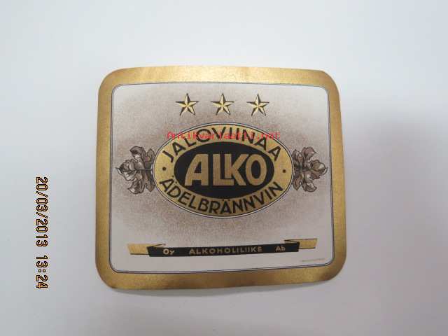 Jaloviinaa - Ädelbrännvin (Kolmen tähden) -viinaetiketti 1930-luvulta