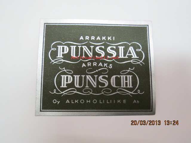 Arrakki Punssia - Arraks Punsch -viinaetiketti 1930-luvulta