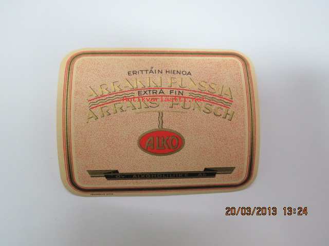 Erittäin Hienoa Arrakki Punssia - Extra Fin Arraks Punsch -viinaetiketti 1933 (kirjapainon merkintä kääreessä 24.4.1933)