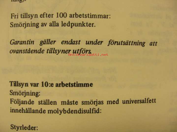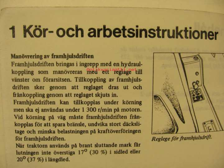 Käyttöohjekirja ruotsiksi, kopio, nelivetomallin erilliset sivut.