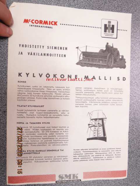 McCormick SD yhdistetty siemenen ja väkilannoitteen kylvökone -myyntiesite