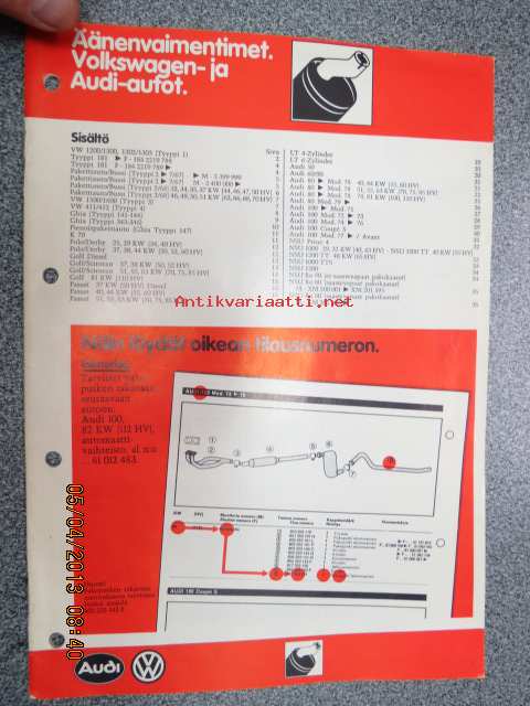 Volkswagen ja Audi äänenvaimentimet luettelo 1979