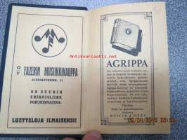 Lauluja - 1928, perinteinen musta vahakantinen vihko, johon kirjoitettu laulujen sanoja