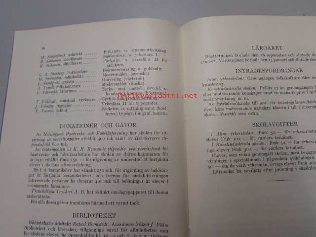 Taideteollisuuskeskuskoulu - Centralskolan för konstflit, 1930