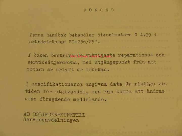 Volvo BM Skördetröska ST 257/258 Verkstads handbok Perkins 4.99