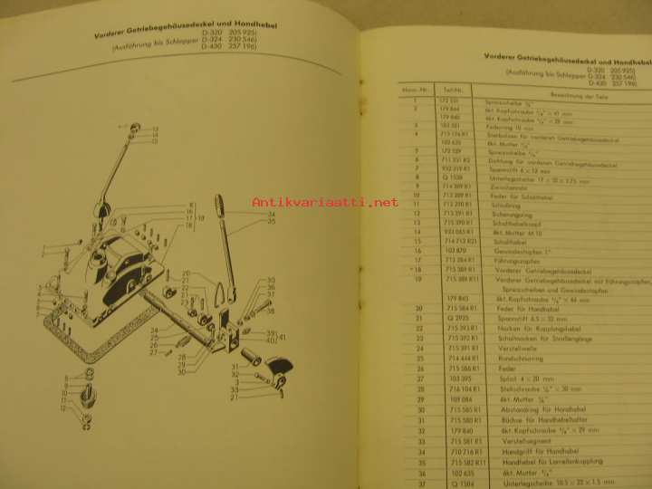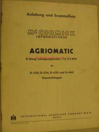 Agriomatic -vaihteiston käyttöohjekirja ja varaosaluettelo.