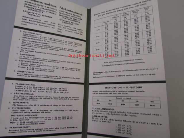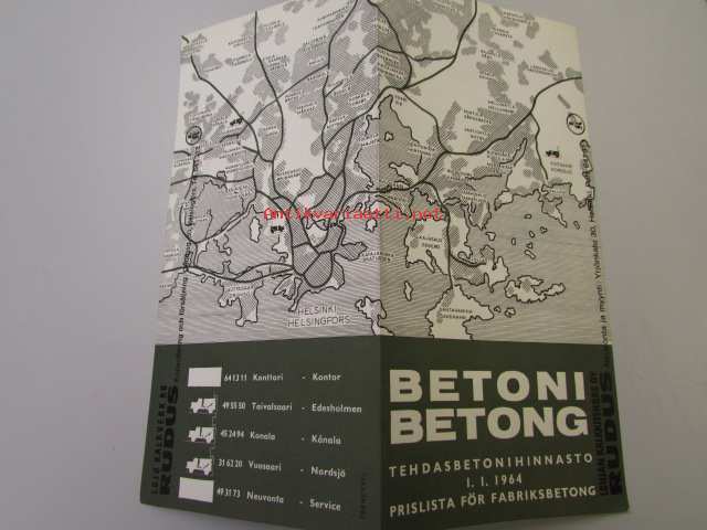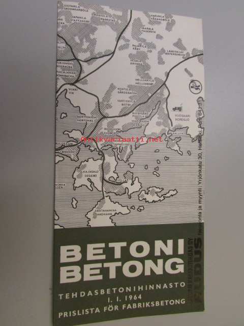 Lohjan Kalkkitehdas Oy Betoni tehdasbetonihinnasto 1.1.1964