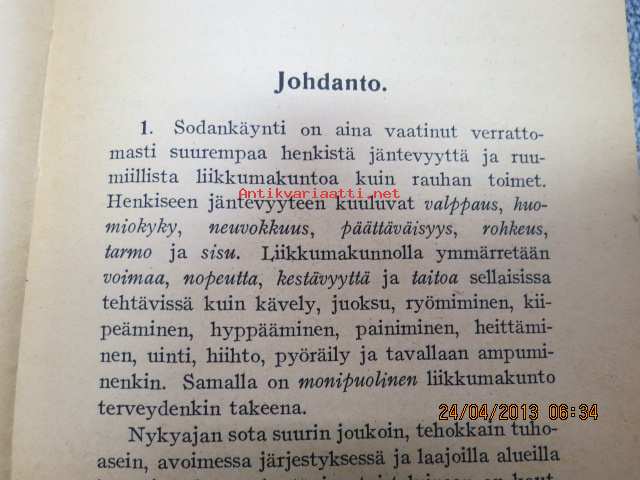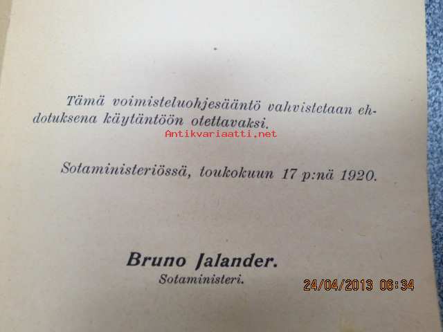 12 x 18 cm puolustusvoimain ohjesääntökirja voimistelulle.