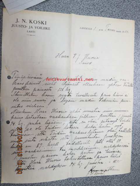 J.N. Koski Juusto- ja voiliike, Lahti, 1.1.1922