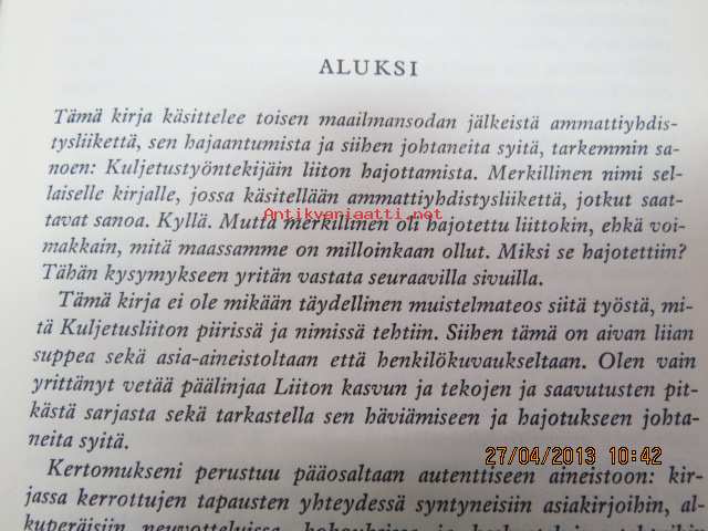 Yksinäisenä sutena - Kuljetusliiton tuho (Kuljetustyöntekijäin Liitto)