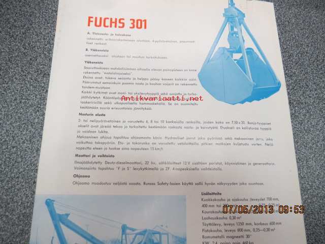 Fuchs 301 yleisnosto- ja kaivukone -myyntiesite