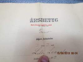 Årsbetyg för eleven vid Kimo (Vasa) högre folkskolas I klass Lilly Laavola läsåret 1918-1919