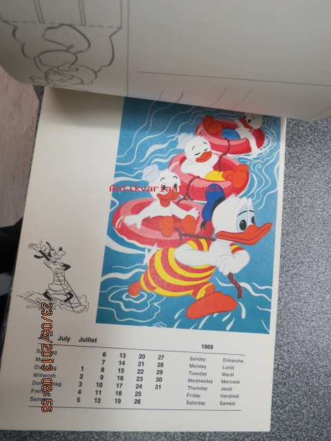 Micki maus 1969 kalender -Walt Disney kalenteri, jossa irroitettavia (leikattavia) hahmoja ja käytetty kuukausikuva lähetettävissä postikorttina