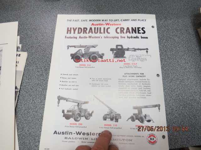 Austin-Western 110 hydraulinen nosturi -myyntiesite