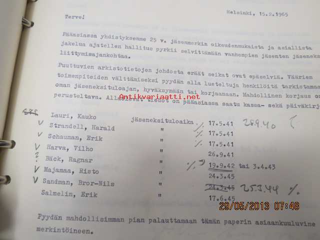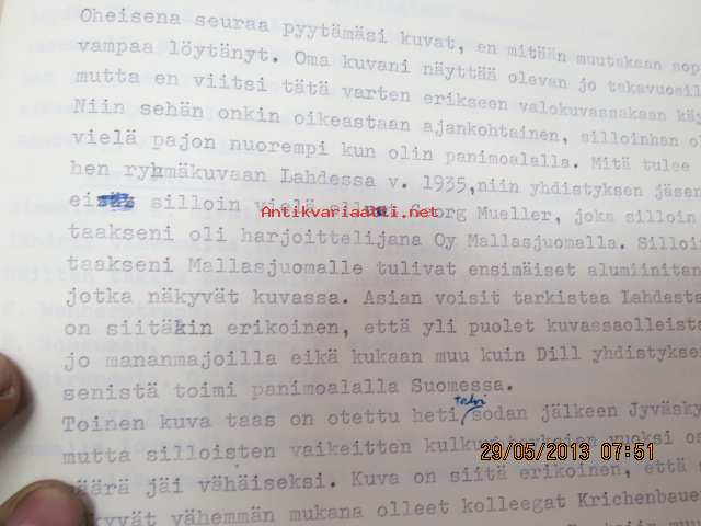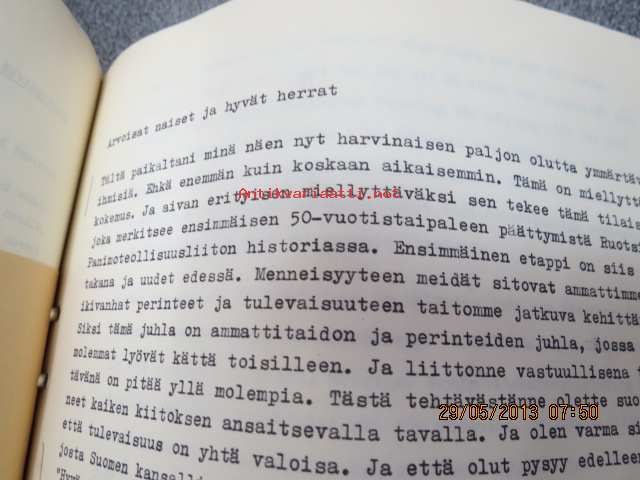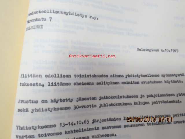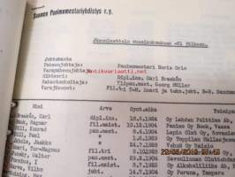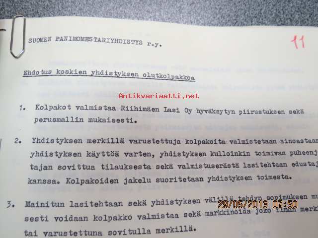 Suomen Panimomestariyhdistyksen asiakirjoja, luonnoksia, kirjeenvaihtoa, muisteluksia ym. -mappi 1960-luvulta (toiminnassa mukana olleen kirjastostosta löytynyt)