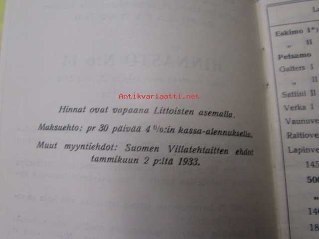 Littoinen Oy verkatehdas hinnasto nr 14 (Saara Alho)