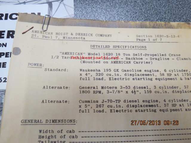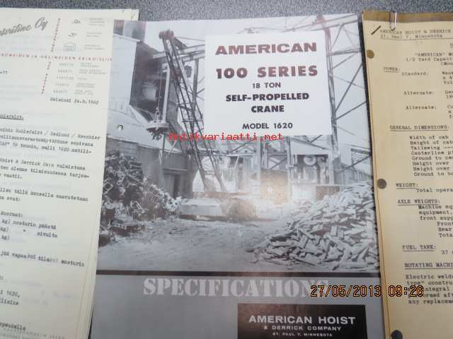 American Hoist 100 Series 18 ton self-propelled crane model 1620 specifications - mobiilinosturi -myyntiesite