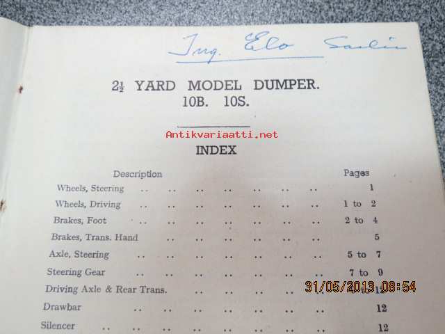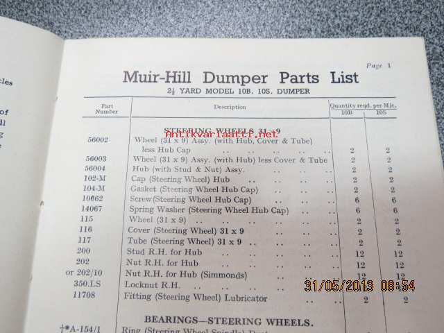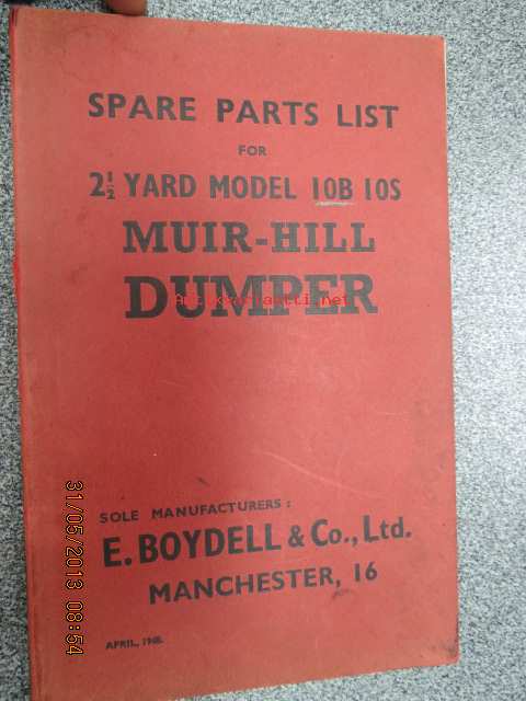 Muir-Hill Dumper 2,5 yard model 10B, 10S Spare parts list -varaosaluettelo