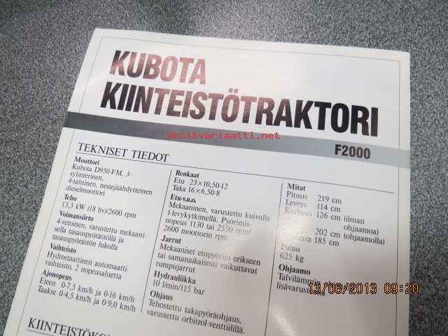 Kubota F2000 -myyntiesite