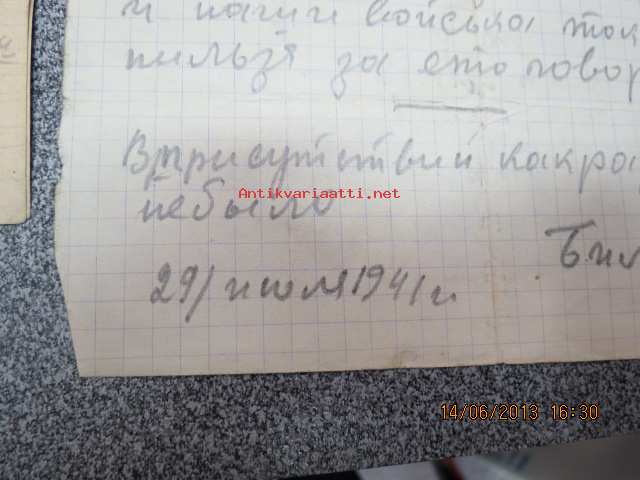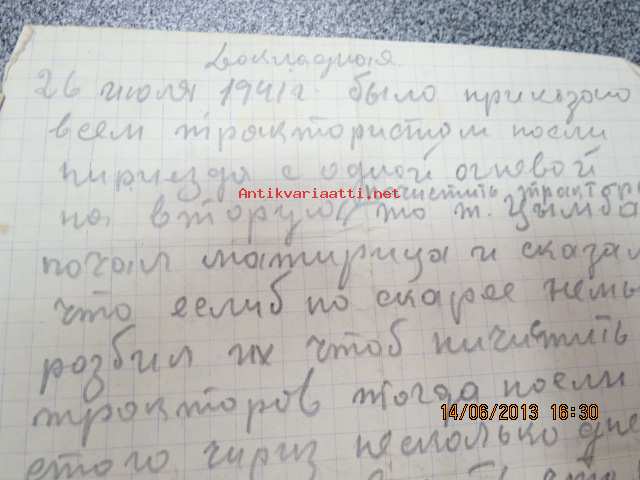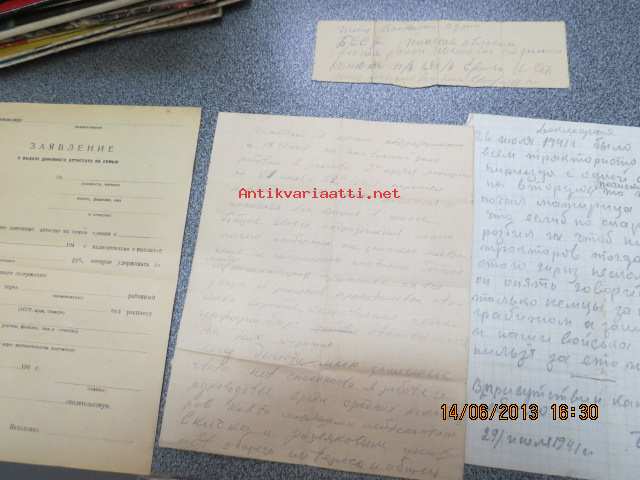 Neuvostoliittolaiset (ilmianto?)/ selityskirjeet jonkin vehkeen rikkoutumisesta rintamalla 1941