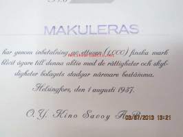 Kino Savoy Oy, 1 osake á 1 000 mk, Helsinki 1937 -osakekirja
