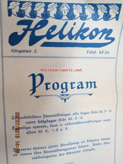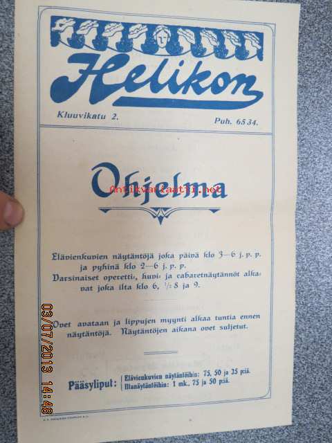 Helikon, Kluuvikatu 2, Helsinki elokuva- / operettiteatteri - Ohjelma nr 24 mm. Sillinkalastus Englannin kanavassa -kinematografinen kuva, sens. nr 26, Gaumont , Eino Salmela yksinpuhelu ym. -käsiohjelma