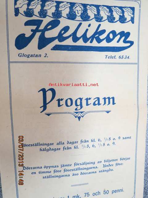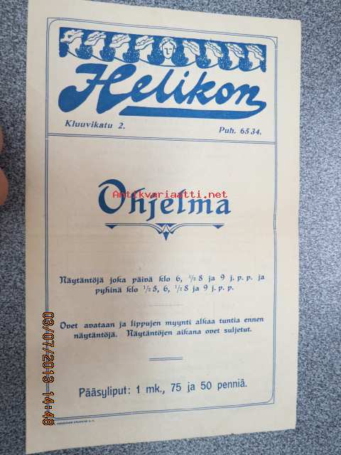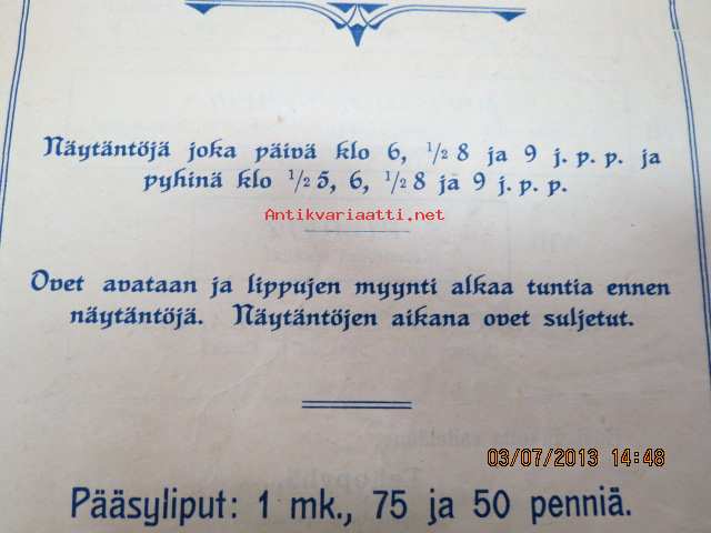 Helikon, Kluuvikatu 2, Helsinki elokuva- / operettiteatteri - Ohjelma nr 27 mm. Löytölapsi -kinematografinen kuva, sensuuri nr 1297 Vitagraph -elokuva, Aatto