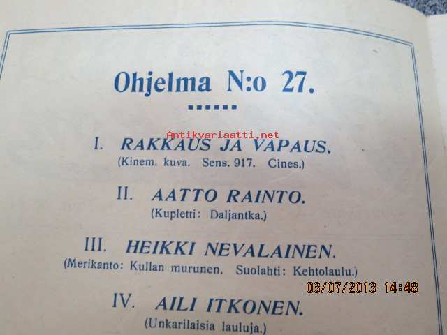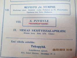 Helikon, Kluuvikatu 2, Helsinki elokuva- / operettiteatteri - Ohjelma nr 27 mm. Löytölapsi -kinematografinen kuva, sensuuri nr 1297 Vitagraph -elokuva, Aatto Rainto, Mefisto ja Nymphi -live-esitykset -käsiohjelma