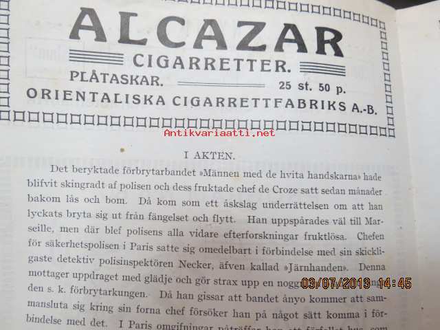 Maxim P. Esplanadikatu 39, Helsinki; Järnhanden - Flykten från Pagnon - Kriminaldrama i 3 afdelningar, kinematografisk bild, sensur nr 4177, längd 1150 m,