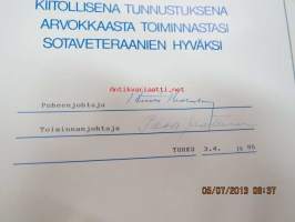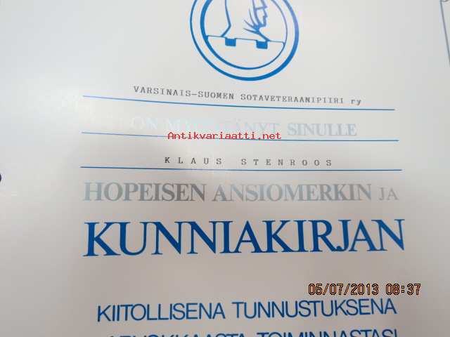 Varsinais-Suomen Sotaveteraanipiiri ry 95 / Klaus Stenroos / Hopeinen ansiomerkki -myöntökirja