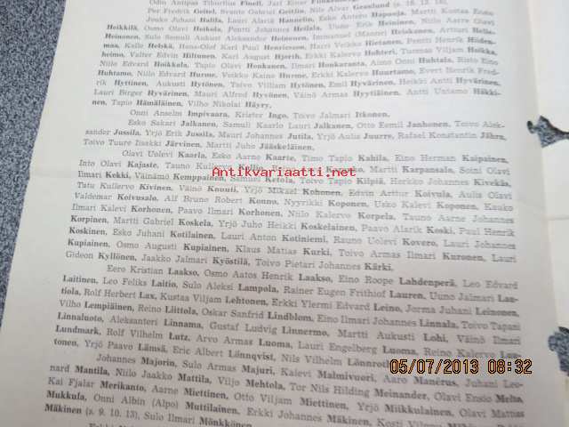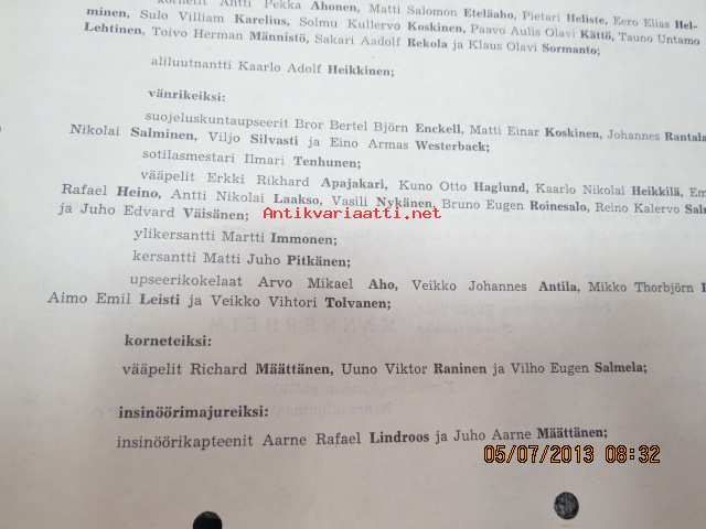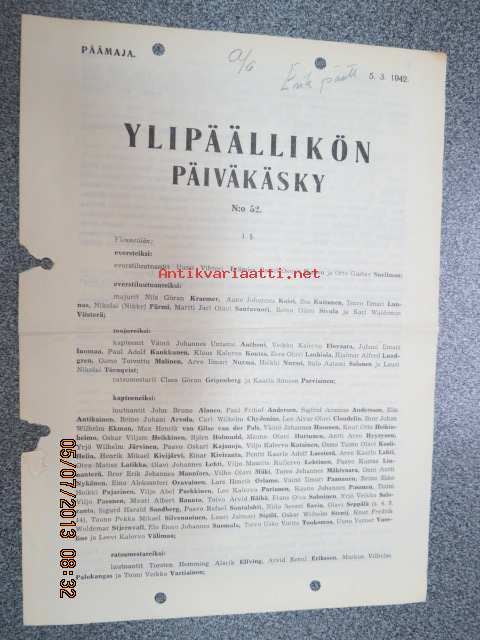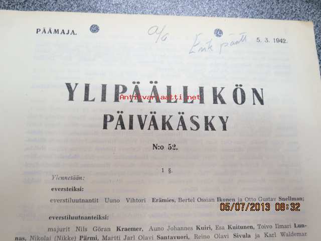 Ylipäällikön päiväkäsky nr 52 5.3.1942 ylennetään luutnanteiksi mm. Klaus Aarne Stenroos