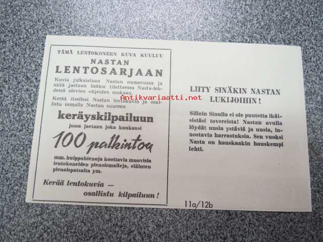 Nasta(-lehti) lentosarja nr 20 Saab A 21R -keräilykuva