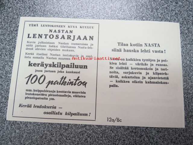 Nasta(-lehti) lentosarja nr 11 Avro Canada CF-100 -keräilykuva