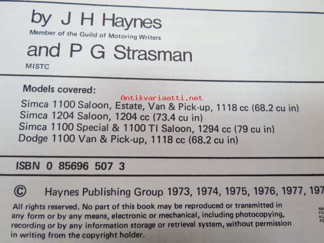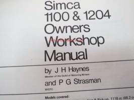 Simca 1100 & 1204 1967 to 1979 1118, 1204, 1294 cc Haynes Owner´s Workshop Manual -huolto-ohjekirja