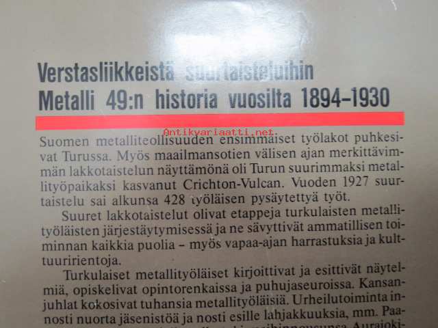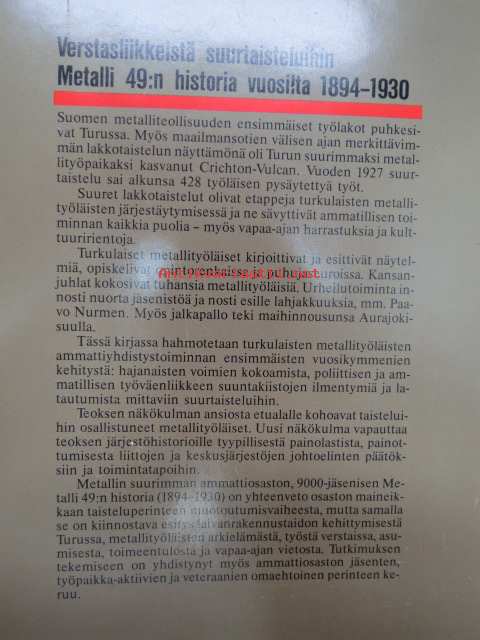 Verstasliikkeistä suurtaisteluihin. Metalli 49:n historia vuosilta 1894-1930 [Turku]