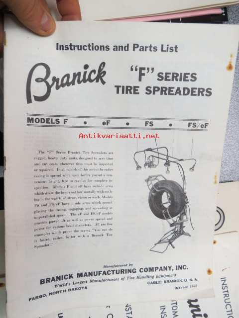 Branick tire assembly etc. tools - rengasalan työkalujen ja tarvikkeitten esittelylehtisiä ja mainoksia 10 kpl