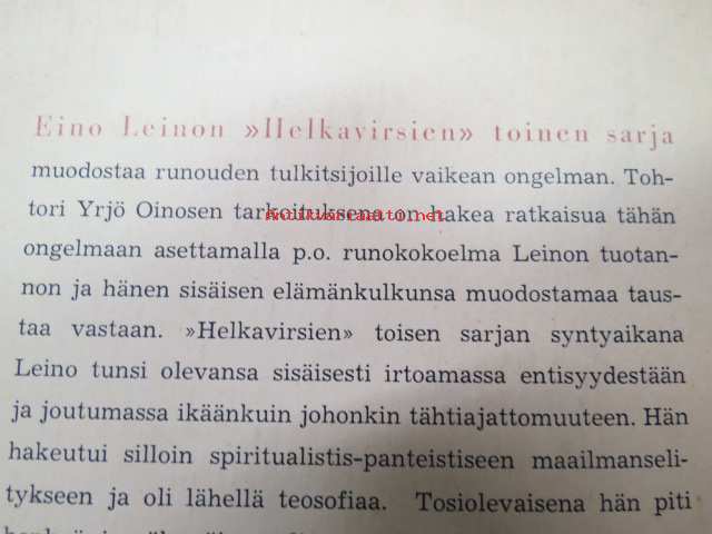 Eino Leinon "Helkavirsien" toisen sarjan ongelma