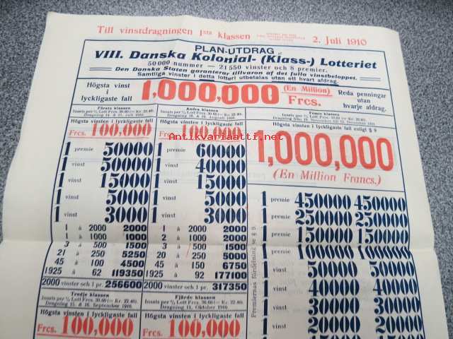 Danska Kolonial (Klass) Lotteriet -arpajaisesite