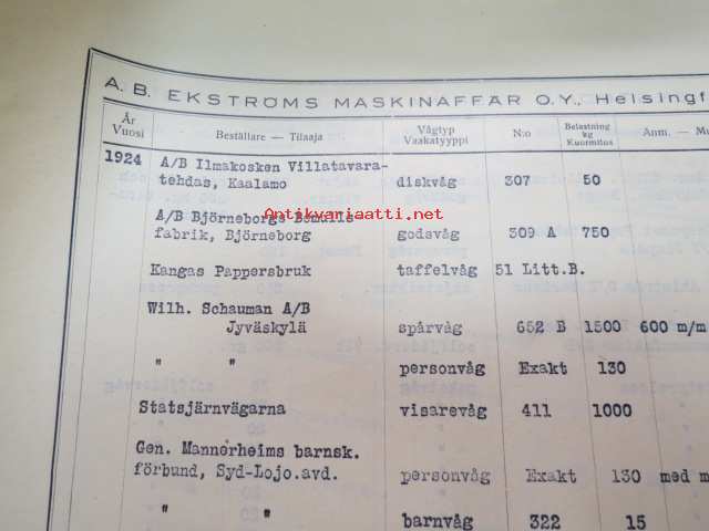 Lindells vågar / Lindells Vågfabrik Ab, Jönköping -vaakaesite referenssitietoineen eli listaus vaakoja ostaneista yrityksistä