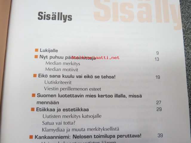 16 x 22 cm. Takakansi: Merkitystalous on haaste, joka on osoitettu Sinulle. Mistä mieli elämään, kun kvartaalifasismi pakottaa juoksemaan yhä kovempaa, eikä selityksiä anneta. Onko käsillä käänne, jossa nopea voitontavoittelu saa pitkän nenän ja toiminnan motiivit punnitaan? Teos on ajankohtainen keskustelupuheenvuoro niistä voimista, joiden keskellä elämme. Pauli Aalto-Setälä kysyy, millaista maailmaa olemme tekemässä ja millaisten asioiden vuoksi olemme valmiit toimimaan. Voisiko työllä vielä olla tarkoitus, ja miksi yksilön kannattaa pitää mielessä myös yhteinen hyvä? Aikamme suurimpana mahtina media kertoo meille joka päivä, millainen maailma on. Mutta millaisista aineksista sen kertomus on tehty? Ketkä ovat julkisuuden pellejä ja ketkä sankareita? Miksi? Omien kokemustensa kautta Aalto-Setälä avaa median ehtoja. Hän kertoo, miksi kiima, kauna ja kauhu jyräävät, ja väittää, että otsikoiden takana kytee merkitysten vallankumous. Pauli Aalto-Setälä on monipuolisen mediauran tehnyt journalisti, joka on työskennellyt sähköisissä ja painetuissa tiedotusvälineissä. Hän on ollut mm. perustamassa tv-kanava Nelosta ja Subtv:tä sekä työskennellyt Iltalehden päätoimittajana. Nykyisin Aalto-Setälä on Kotimaa-konsernin toimitusjohtaja.