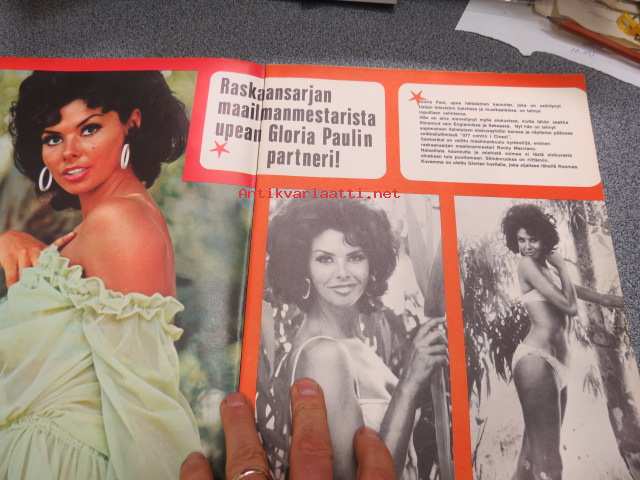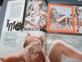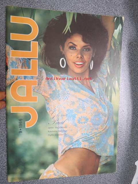 Jallu 1966 nr 9 sis. mm. seur. artikkelit / kuvat; Kansikuva Gloria Paul, Tyttö miestä myöten, Akateemista eli mitä Helsingin opiskelijatytöistä kerrotaan, Rantatyttö Madeleine Rivieralta, Rakkauselämää 60-vuotiaana, 24 x 34 cm.