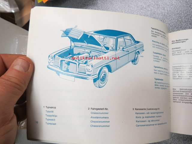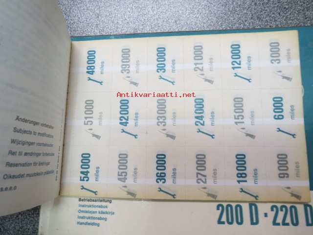 Mercedes-Benz 200 D, 220 D -käyttöohjekirja + huoltolipukevihko + alkuperäinen muovikotelo