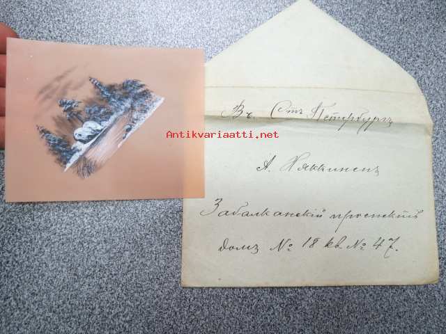A. Häkkinen, St. Petersburg, Sabalkanskij Prospekt dom nr 18 kvartira nr 47 -kirjekuori, ei lähetetty, sisällä erikoinen läpikuultava kortti