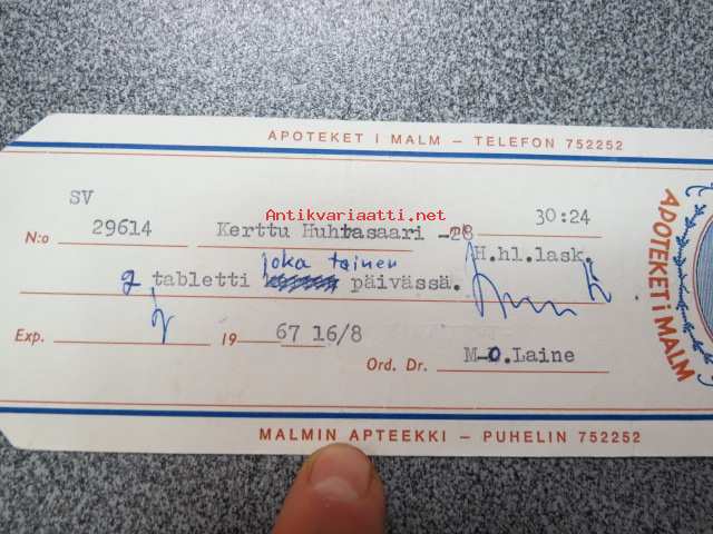 Malmin Apteekki - Apoteket i Malm, 16.8.1967 -apteekkisignatuuri