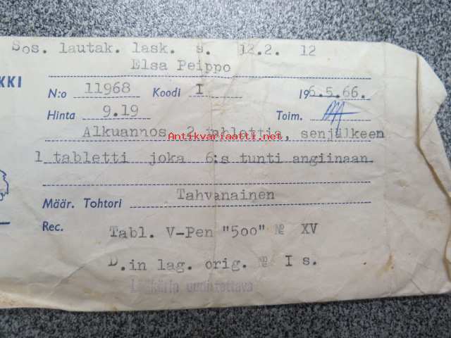 Lahden Uusi Apteekki, 6.5.1966 -apteekkisignatuuri