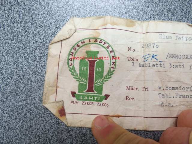 Lahden I Apteekki, Lahti, 9.5.1960 -apteekkisignatuuri