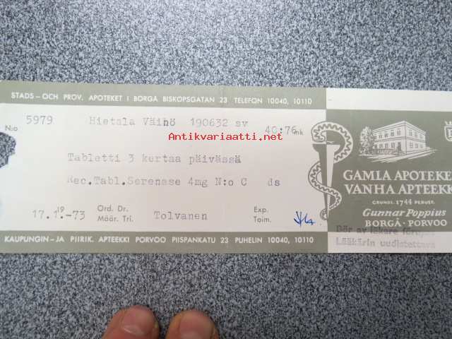 Vanha Apteekki - Gamla Apoteket, Porvoo - Borgå, 16.12.1972 -apteekkisignatuuri