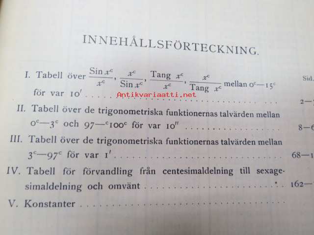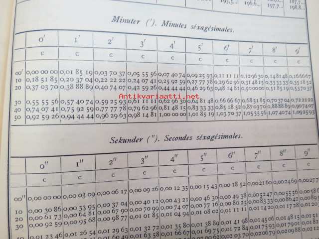 Sexställiga tabeller över trogonometriska funktionernas talvärden för centesimal delning