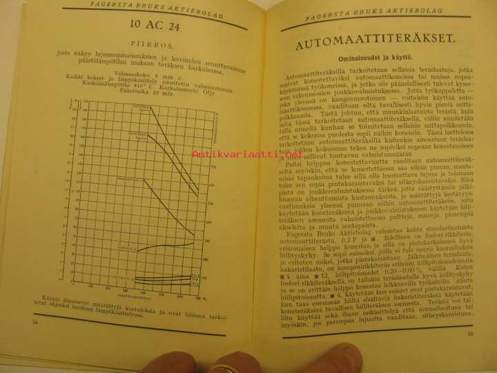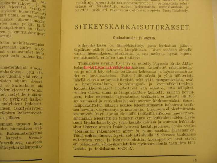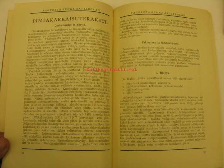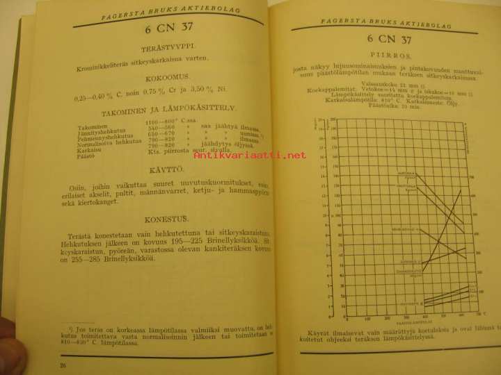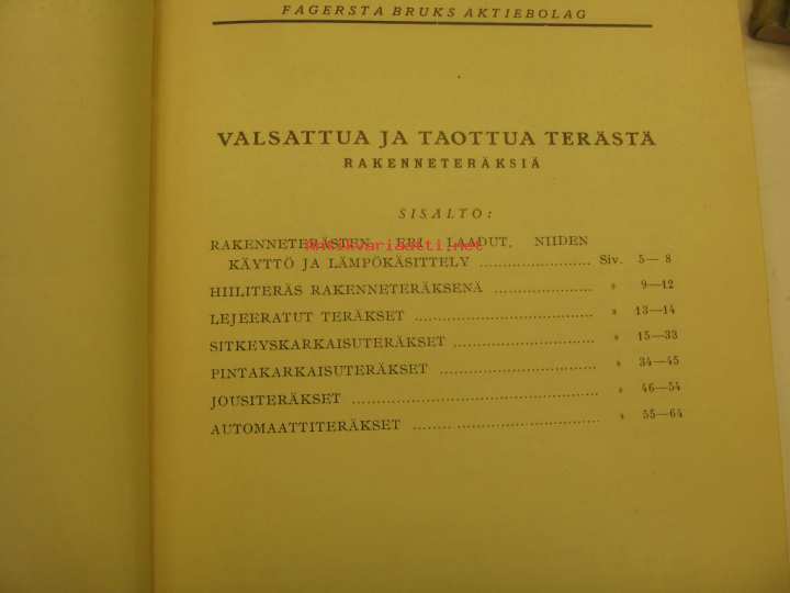 Kirja rakenneteräksistä, erityisesti Fagerstan tehtaan tuotannosta 1930-luvulta.