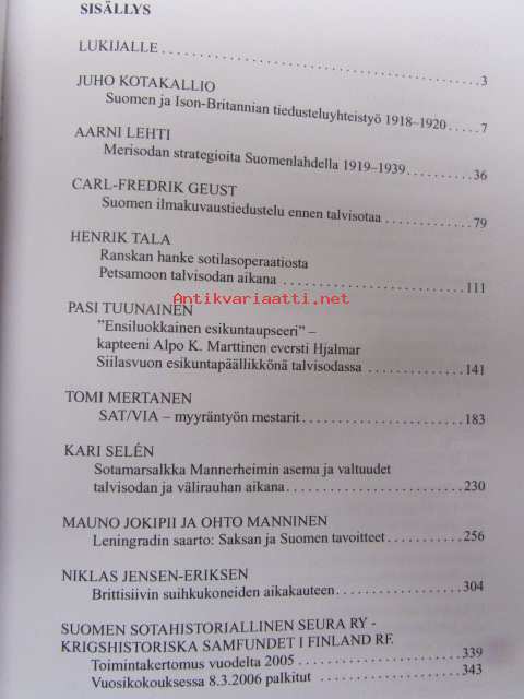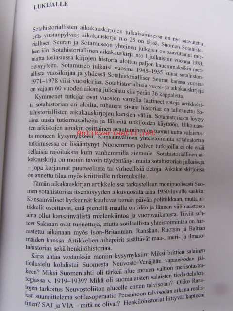 Sotahistoriallinen aikakauskirja 25. sis mm. Merisodan stragioita Suomenlahdella 1919-1939, Suomen ilmakuvaustiedustelu ennen talvisotaa, SAT/VIA - myyräntyön